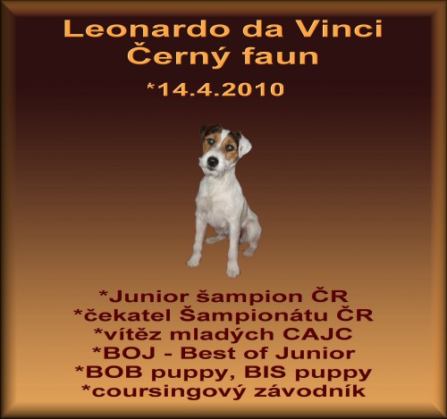 Leon je syn Světového vítěze 2011- Gucciho vom Mutschenhof, dále má "děd" štěňátek tituly Evropský vítěz mladých 2009 a Evropský vítěz 2010, má 36cm, je plnochrupý, trikolor, je zdravý PLL clear, BAER neg., DOV neg., LP 0/0.